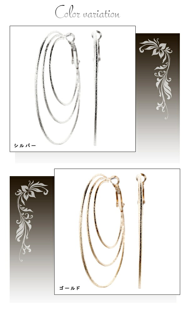 フープピアス レディース 繊細なロープ柄を施したフレームの3連 サージカルステンレス ニッケルフリー 金属アレルギー対応 定番 カジュアル モード シルバー ゴールド プレゼント ギフト かわいい きれい 清楚 可憐 メール便 送料無料 春夏